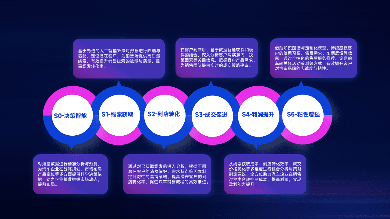通过拓宽潜在客户来源、、优化线索分配并提高到店转化率,,以增强销售效率。。。同时,,,,利用线索数据不断优化分析模型,,,有效提升转化率,,,扩大营销影响力。。。。